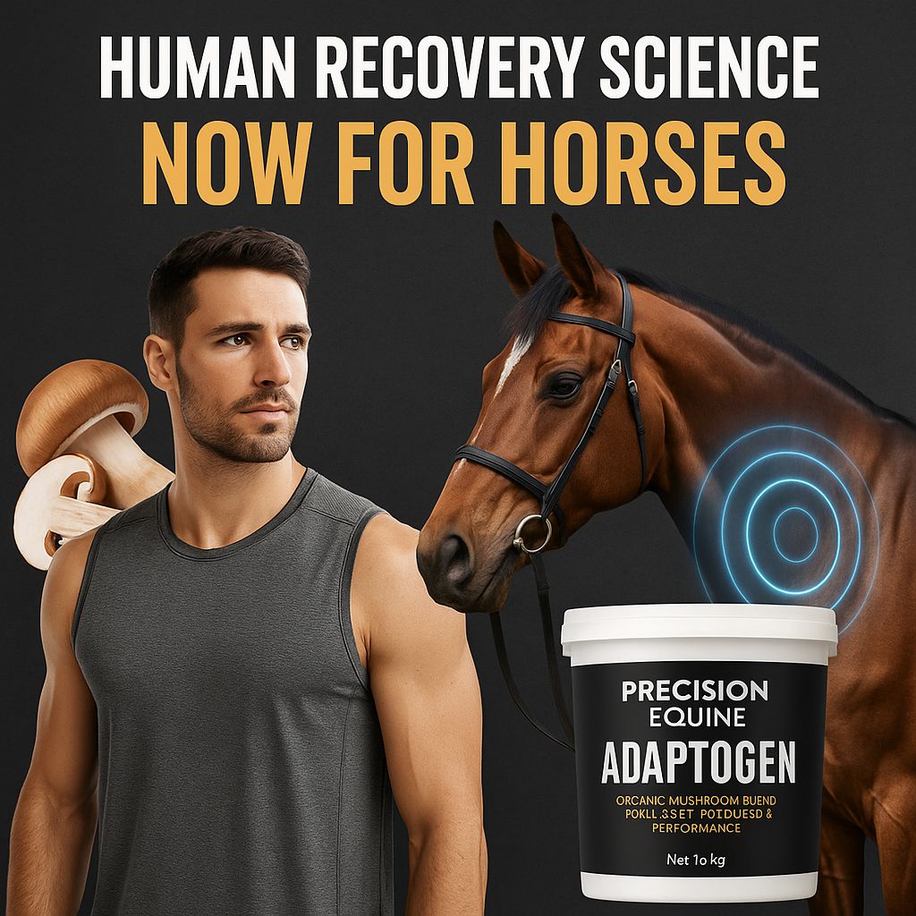 Precision Equine Adaptogen is built from the same organic mushrooms used by top human athletes and reformulated specifically for horses.